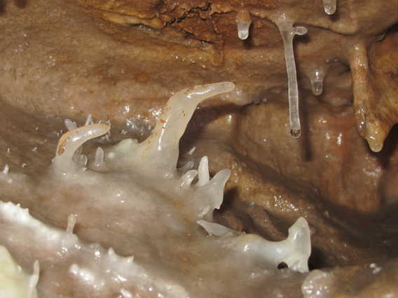 Excentriques sind Sinterformen, die nach allen Richtungen wachsen können und nicht der Schwerkraft folgen - so wie bei Kristallen. Für ihre Entstehung sind Kapillarkräfte wichtiger als die Fliessrichtung des Wassers. Die Wasserverdunstung und die Grösse und Orientierung der Kalzitkristalle haben einen grossen Einfluss auf die Formbildung. Excentriques werden selten grösser als 10 cm und nur ausnahmsweise grösser als 20 cm.