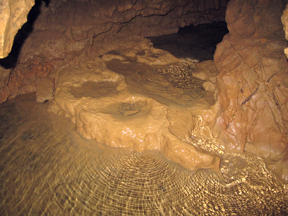 Wo Wasser langsam über eine Stufe fliesst, kann sich Sinter absetzen und die Stufe vergrössern. Der Sinter setzt sich vor allem da ab, wo sich der Sinter und die Wasseroberfläche berühren, und wo das Wasser langsam und in dünner Schicht über die Sinteroberfläche fliesst. Das hängt damit zusammen, dass das Wasser Kohlendioxid an die Luft abgeben muss, damit der Kalk ausfällt, und der Kalk sich am Boden festsetzen muss, damit er nicht wegschwimmt.